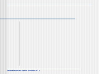 This document discusses network security and honeypot techniques. It provides an overview of honeypots, including their value in learning about blackhat hacking tools and techniques. It describes different types of honeypots, including first and second generation honeypots, and how they aim to gather information while being difficult to detect. The document also briefly mentions honeynets and the Honeynet Project, an organization dedicated to honeypot research.