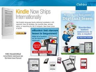 2009 2010 feb 2009 Kindle 2 mei 2009 Kindle DX sep 2009 Samenwerking Bol en Sony in NL okt 2009 Kindle Internationaal nov 2009 B&N NOOK Sep 2009 BeBook mini jan 2010 Kindle DX Internationaal jan 2010 Aankondiging Apple Ipad feb 2010 BeBook Neo