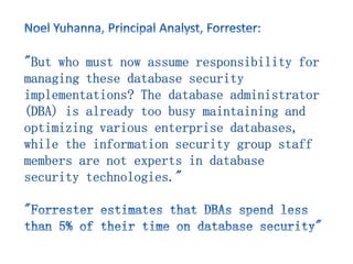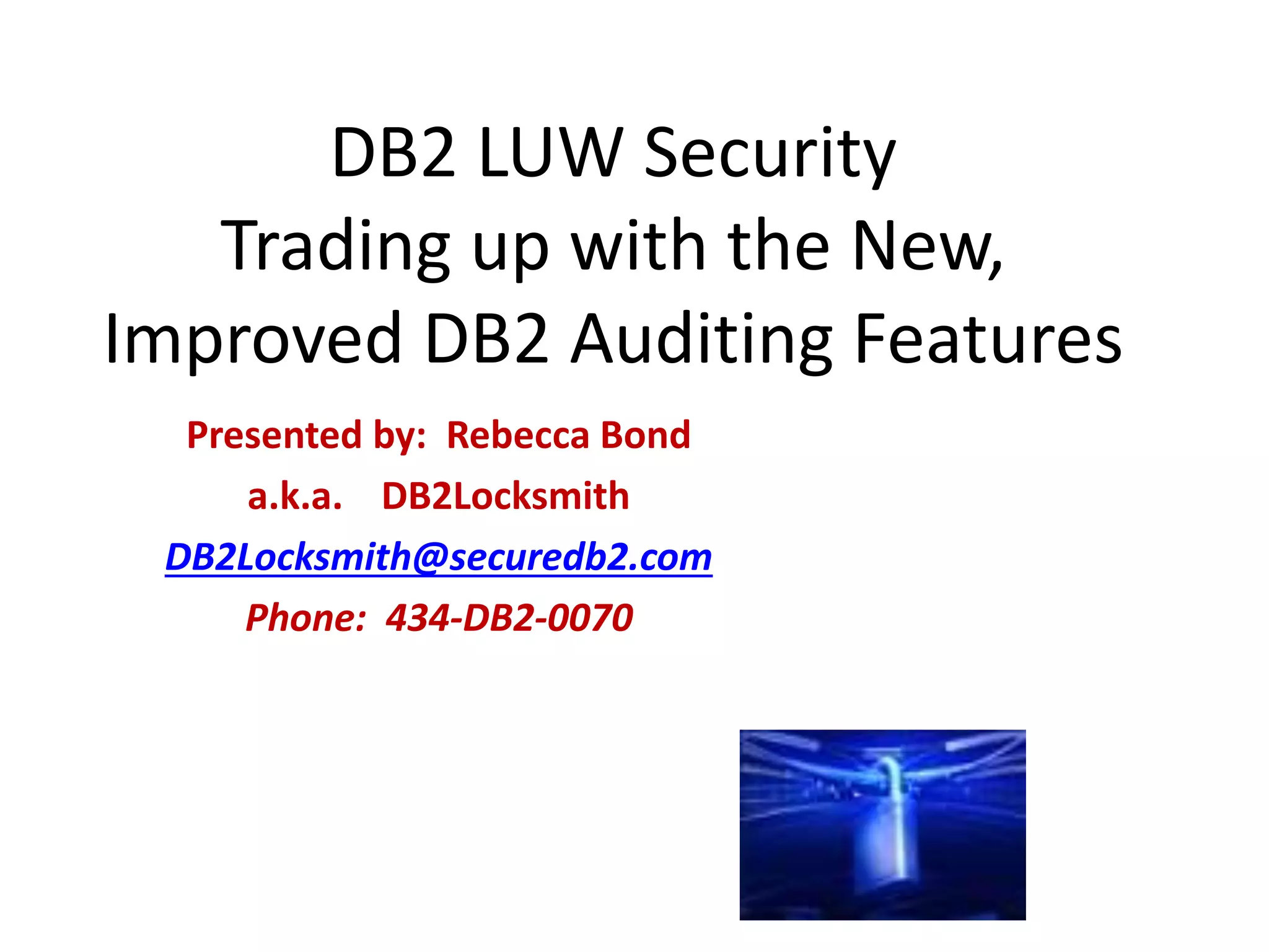 DB2 LUW Security introduces new auditing features in DB2 9.5 that make auditing more flexible and granular. Key points include: