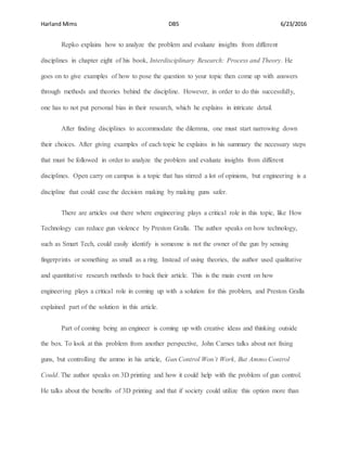 Engineers could play a key role in addressing gun violence by developing innovative technology solutions. The document discusses several ideas, such as "smart tech" that could identify authorized users by fingerprints or other biometrics to prevent unauthorized use. It also proposes controlling ammunition through restrictions or technology like 3D printing bullets instead of guns. While some argue that people not guns are the root cause, the document argues that engineering offers a constructive approach to minimize the negative impacts of guns and speed up the process of ensuring public safety.