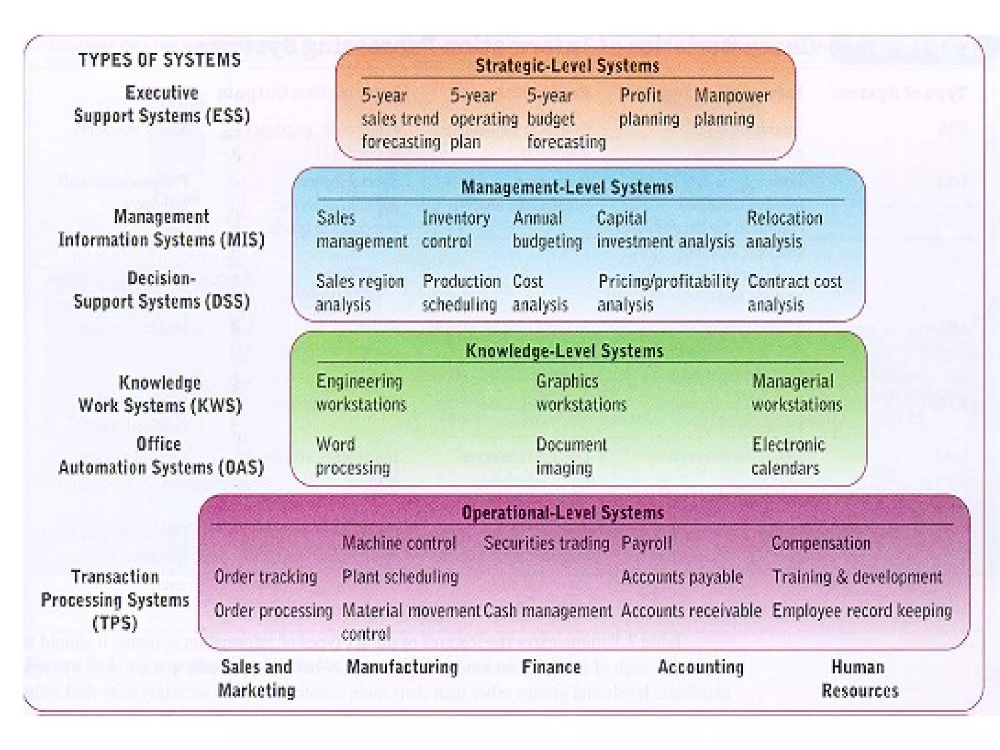 2) There are four levels of information systems - operational, knowledge, management, and strategic - that support different levels in an organization from daily transactions to strategic planning.