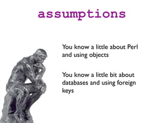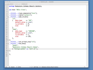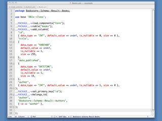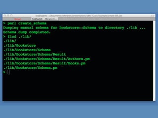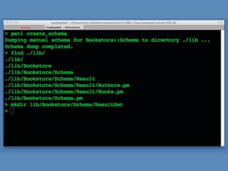 This document provides an overview of using DBIx::Class, an Object Relational Mapper (ORM) for Perl, targeting beginners with some background in Perl and databases. It covers table setup, CRUD operations, schema creation, relationships, and debugging tips, along with practical examples to illustrate the concepts. The talk aims to help users avoid common mistakes and accelerate their learning process within DBIx::Class.