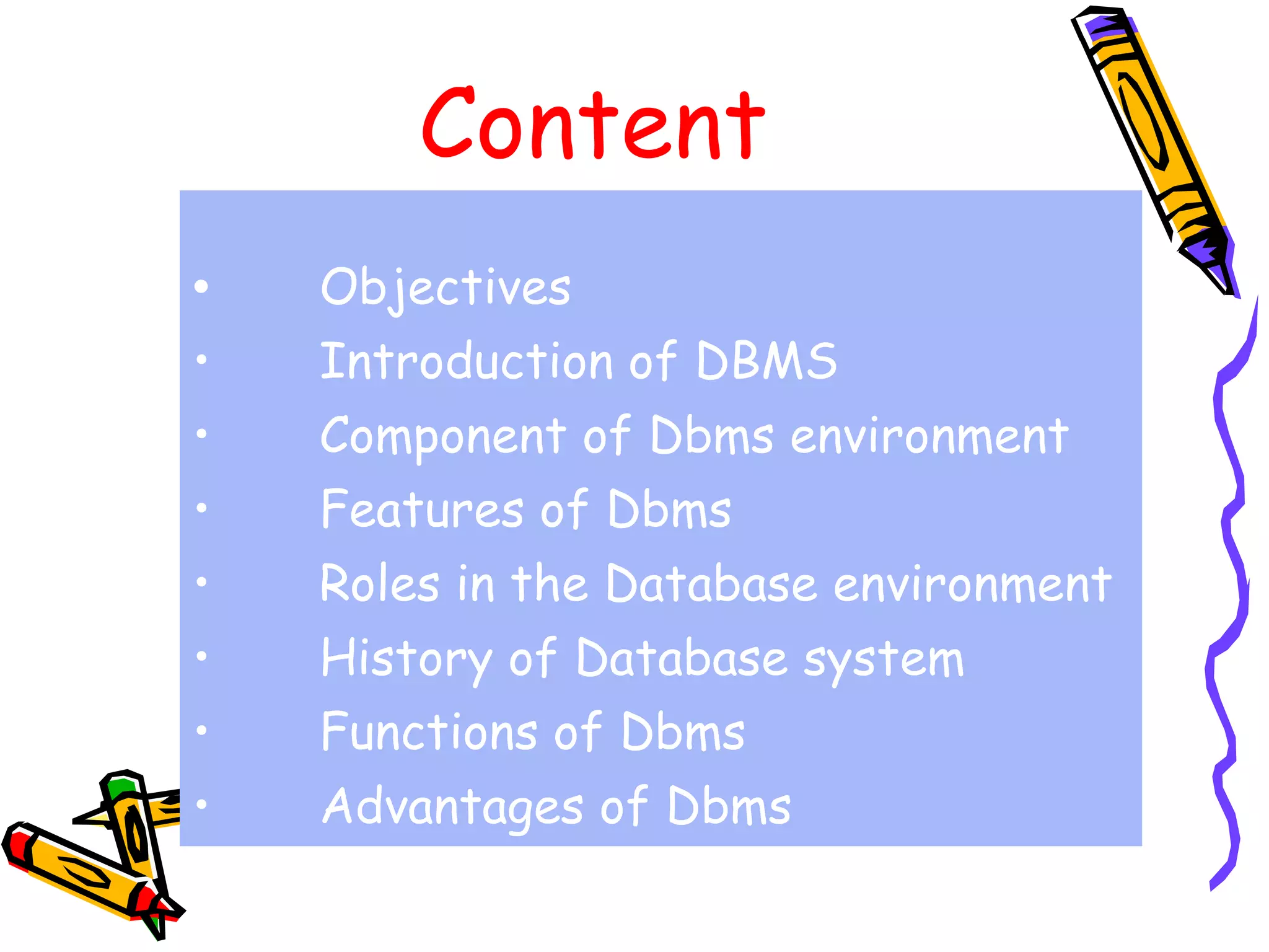 The document provides an introduction to database management systems (DBMS). It discusses the components of a DBMS environment including hardware, software, data, and procedures. It also outlines the roles in a database environment, the history of database systems, and the functions of a DBMS. Advantages include data control and consistency, while disadvantages include complexity, size, and costs.