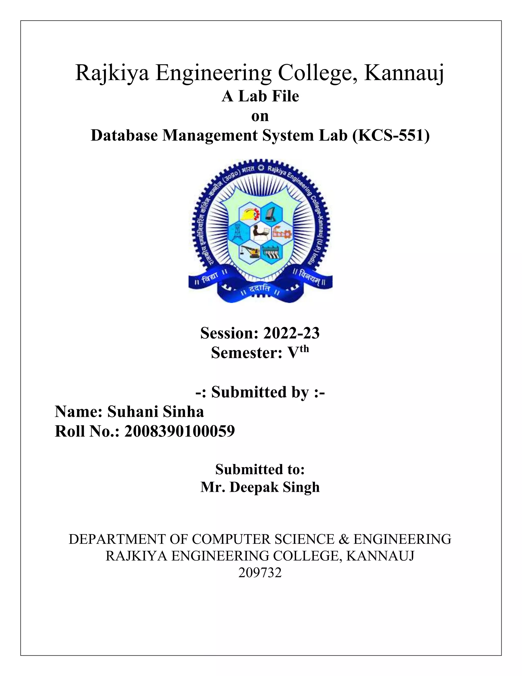 The document describes experiments conducted in a Database Management System lab. It includes steps to install MySQL, create databases and tables, perform CRUD operations, implement integrity constraints, use aggregate functions and joins. The key points are: