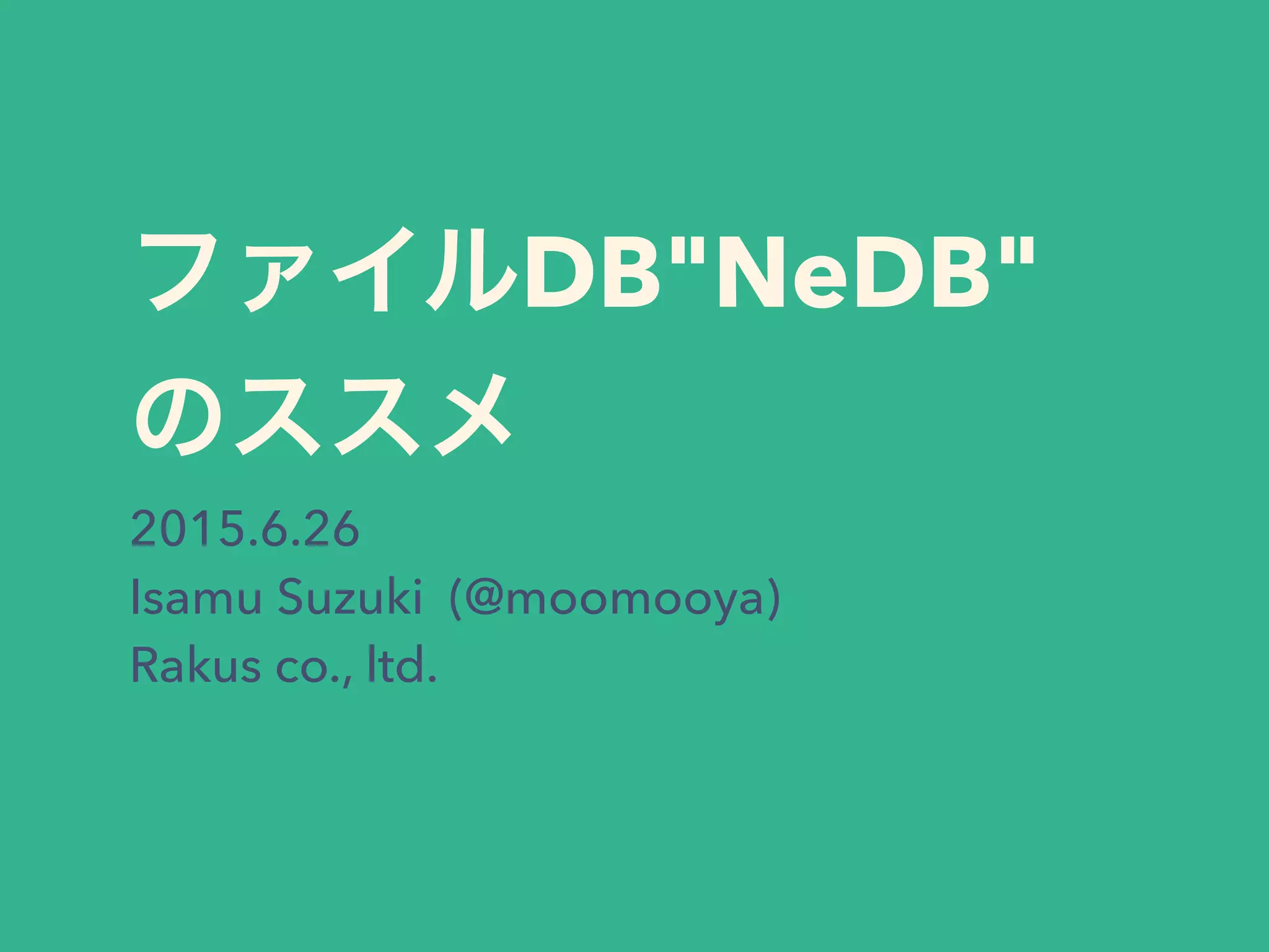 Node.jsで使えるファイルDB"NeDB"のススメ 1. 2. 鈴木 勇