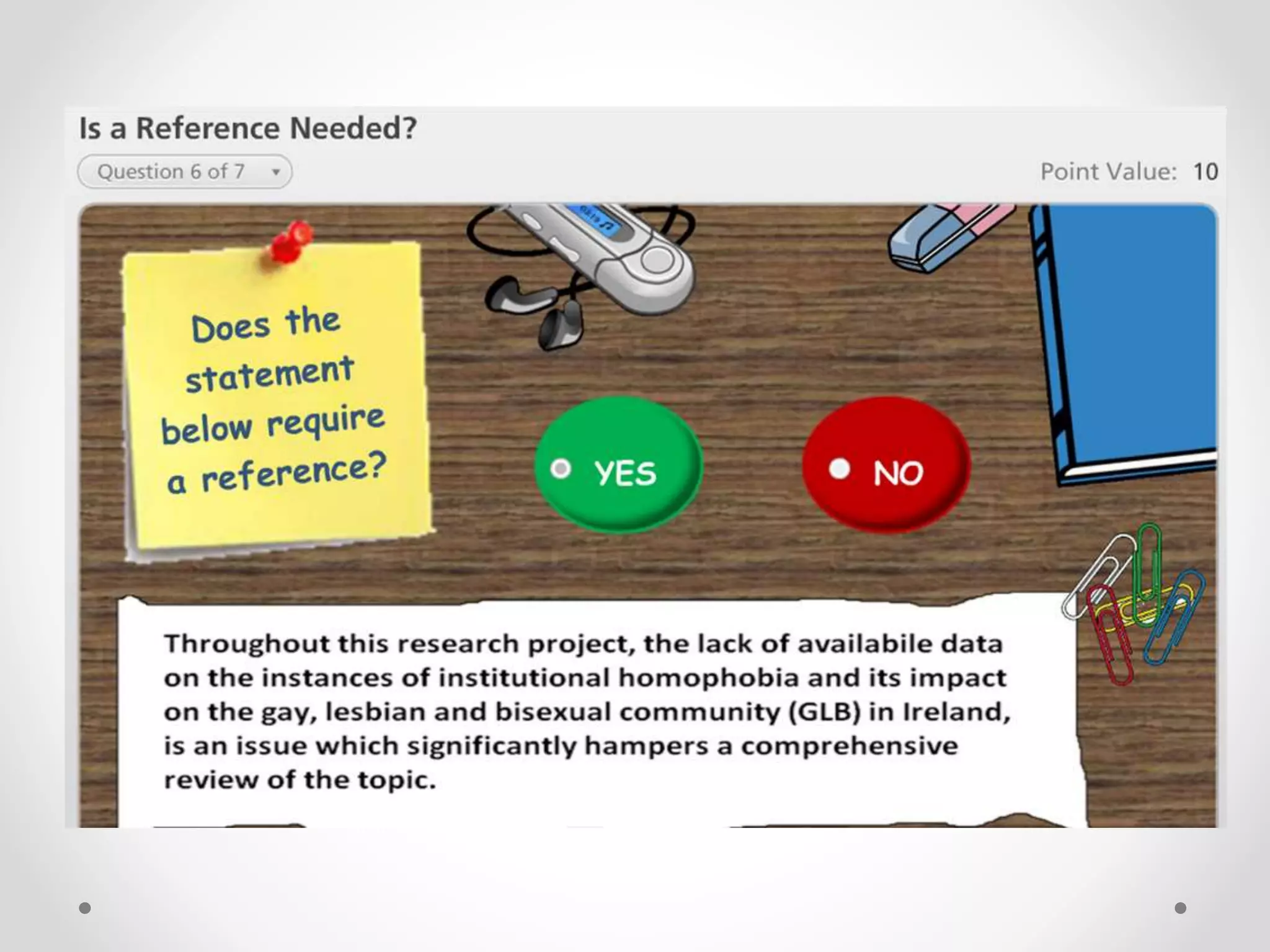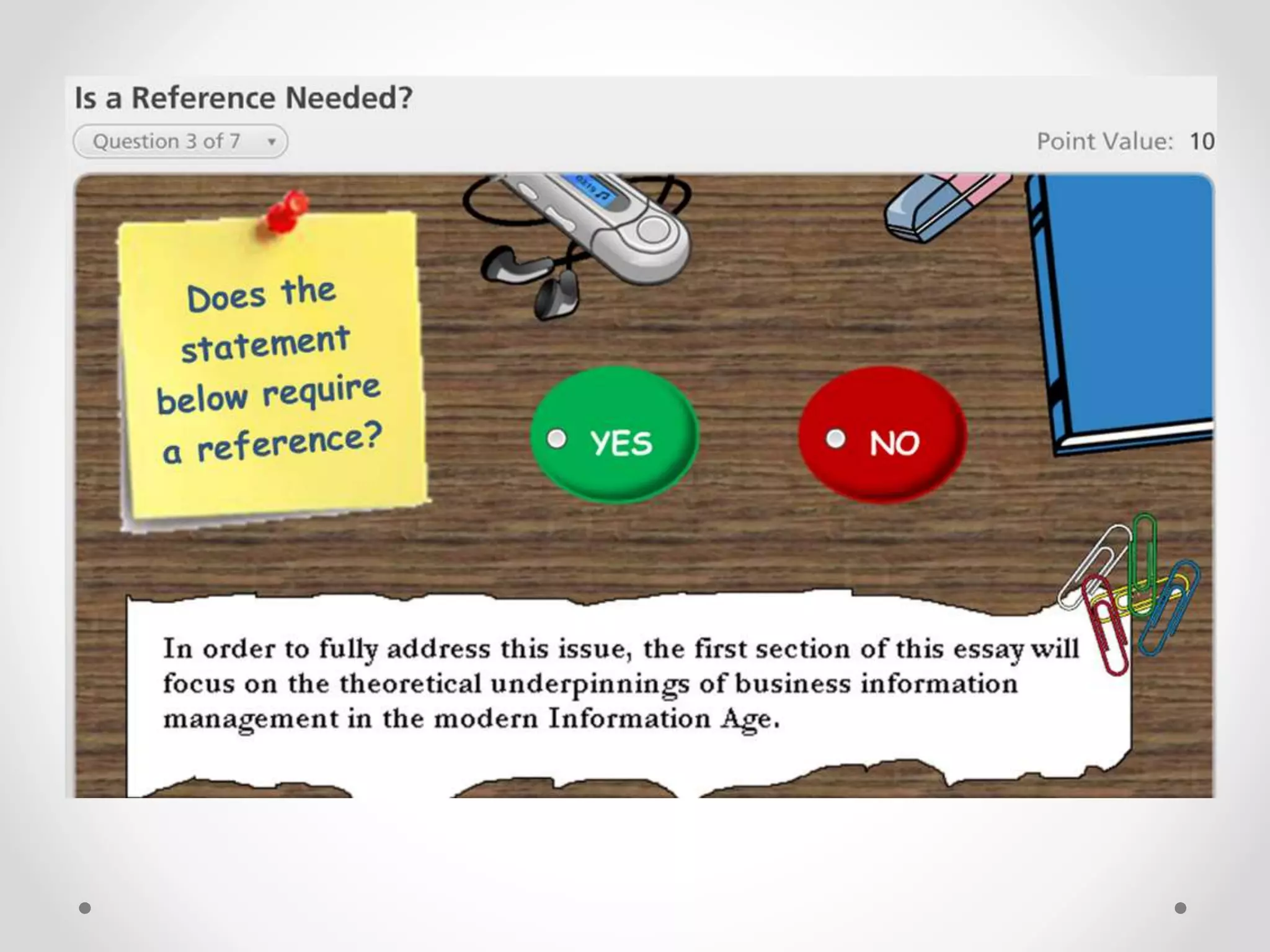 The document provides guidance on referencing for DBS arts students. It explains that referencing allows readers to know which evidence sources were used to formulate or back up opinions in assignments. The American Psychological Association (APA) referencing style is used. Referencing gives weight to arguments, credits others' work, avoids plagiarism, and directs readers to information sources. The document outlines how to cite direct quotes, paraphrases, and summaries and provides examples of in-text citations and reference list entries for different source types like books, journal articles, and webpages. It also discusses when citations are needed and reference management software like Zotero.