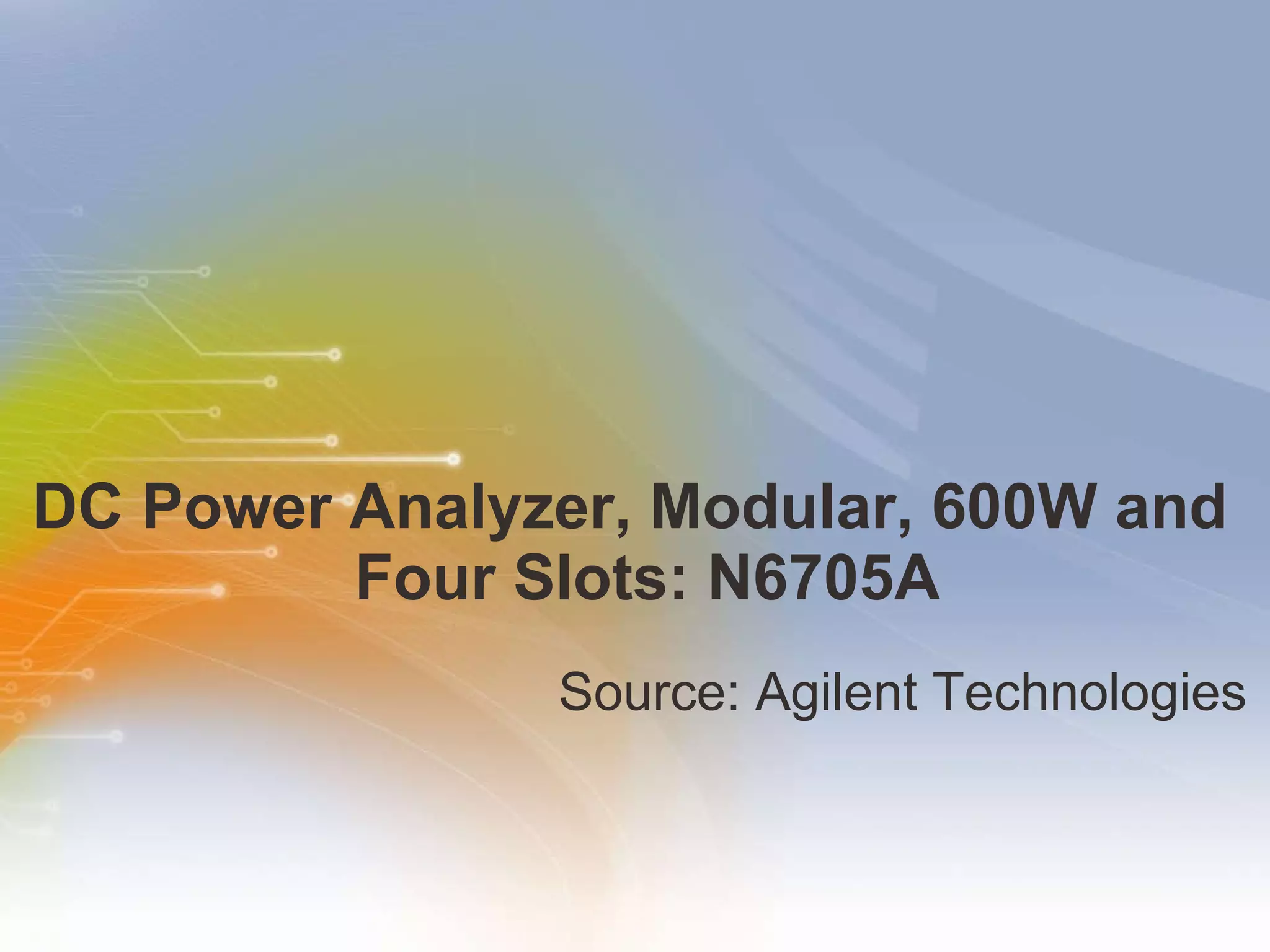 The document provides an overview of the Agilent Technologies N6705A DC Power Analyzer. It can source and measure DC voltage and current with up to four slots that can each hold a power supply module with a total output of 600W. Key features include integrated voltmeter, oscilloscope, arbitrary waveform generator, and datalogging capabilities. It allows testing devices by sourcing complex voltage sequences and measuring power consumption over time without programming.