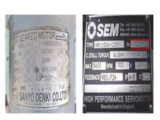 3) A DC servo motor uses separate power sources for the field and armature windings. It can be field controlled, where the field is controlled by feedback, or armature controlled, where the armature is controlled by feedback. Field control provides slower response while armature control provides faster response.
