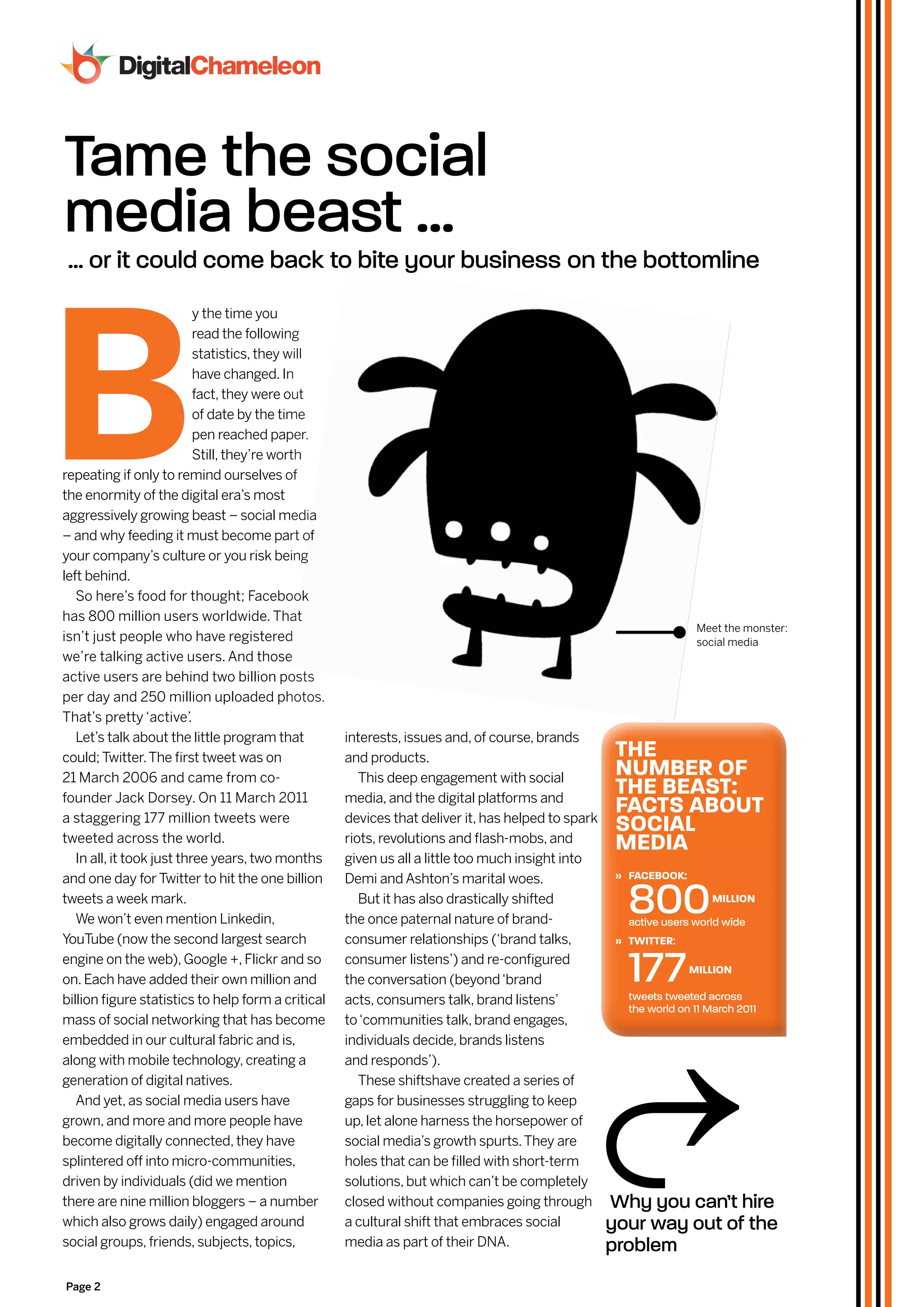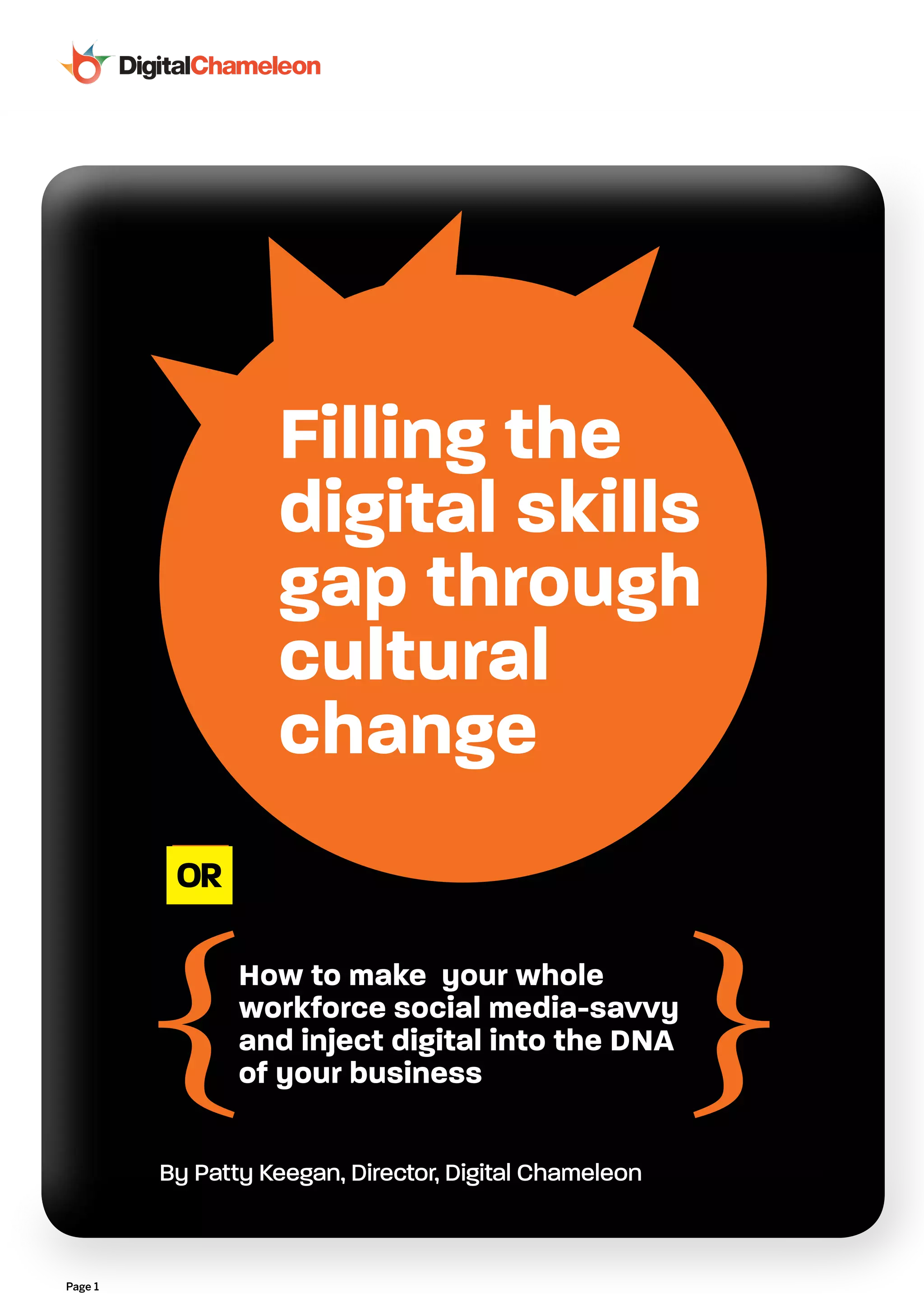 The document discusses the necessity for businesses to embrace social media as part of their corporate culture to avoid being left behind in the digital era. It highlights the significant gap in digital skills among employees and the importance of implementing an enterprise-wide strategy for social media training to maximize engagement and ROI. The evolution of social media skills is presented, outlining the stages companies go through from reliance on individual experts to integrating social media into daily operations across all departments.