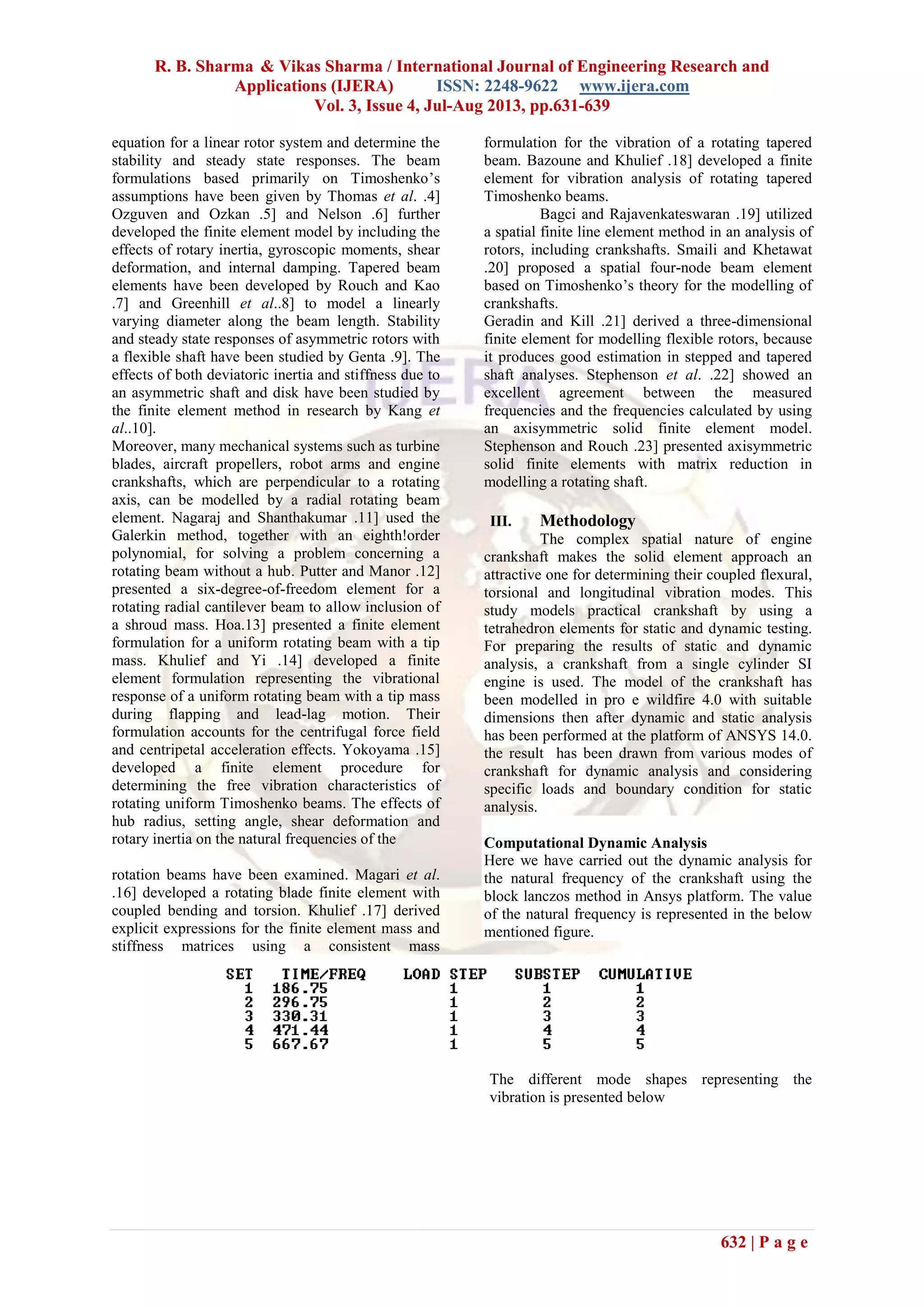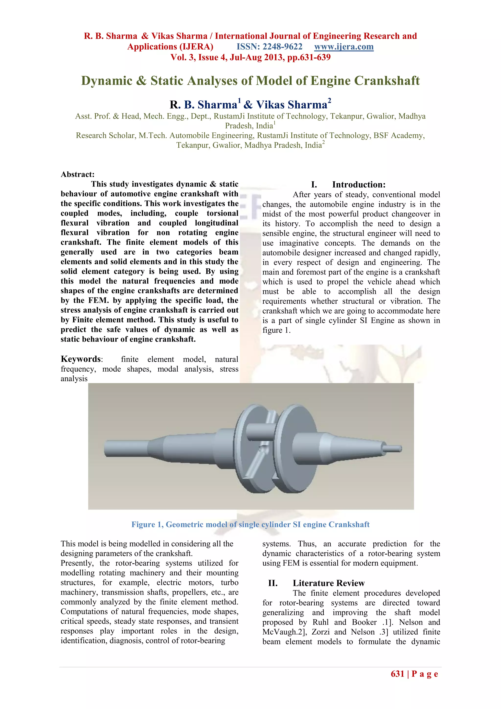 This study examines the dynamic and static behavior of automotive engine crankshafts using finite element analysis, focusing on coupled modes of vibration and stress analysis under specific loading conditions. The results indicate that the natural frequencies of the crankshaft range from 186.75 Hz to 667.67 Hz, while the static analysis reveals safe deformation and stress values, confirming the model's structural integrity. The findings provide crucial insights into the design and safety parameters for engine crankshafts.