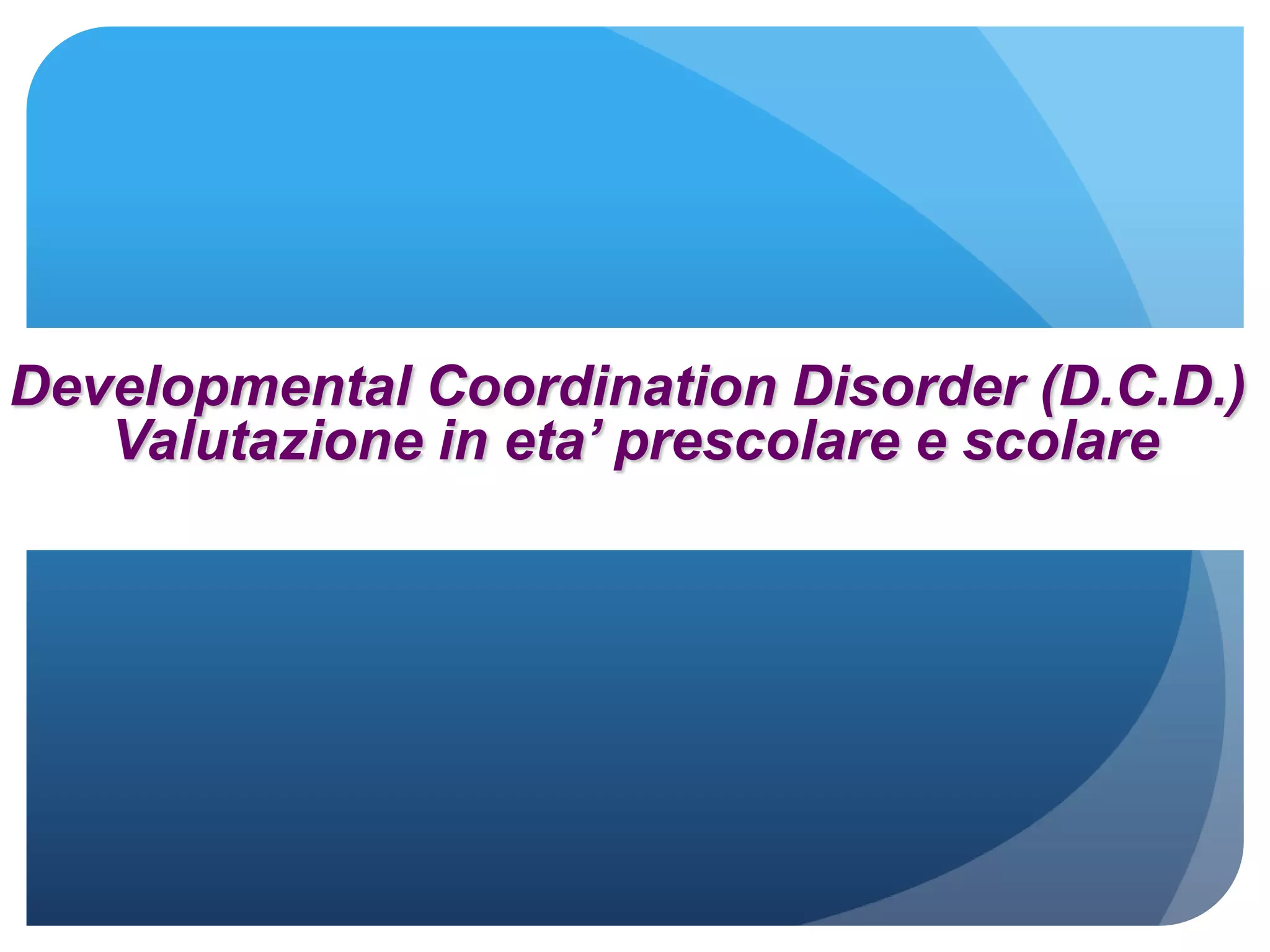 Il documento tratta del Disturbo da Coordinazione Sviluppo (DCD), definito dal DSM-IV e caratterizzato da compromissioni nelle competenze motorie e impatti sullo sviluppo scolastico e sulla vita quotidiana. Viene evidenziata una prevalenza del 6% nei bambini tra i 5 e gli 11 anni e illustrati i criteri di valutazione e le caratteristiche del disturbo, nonché le tecniche per la diagnosi e l'intervento terapeutico. Infine, si discute l'importanza di riconoscere le difficoltà motorie nella valutazione scolastica e sociale dei bambini affetti.