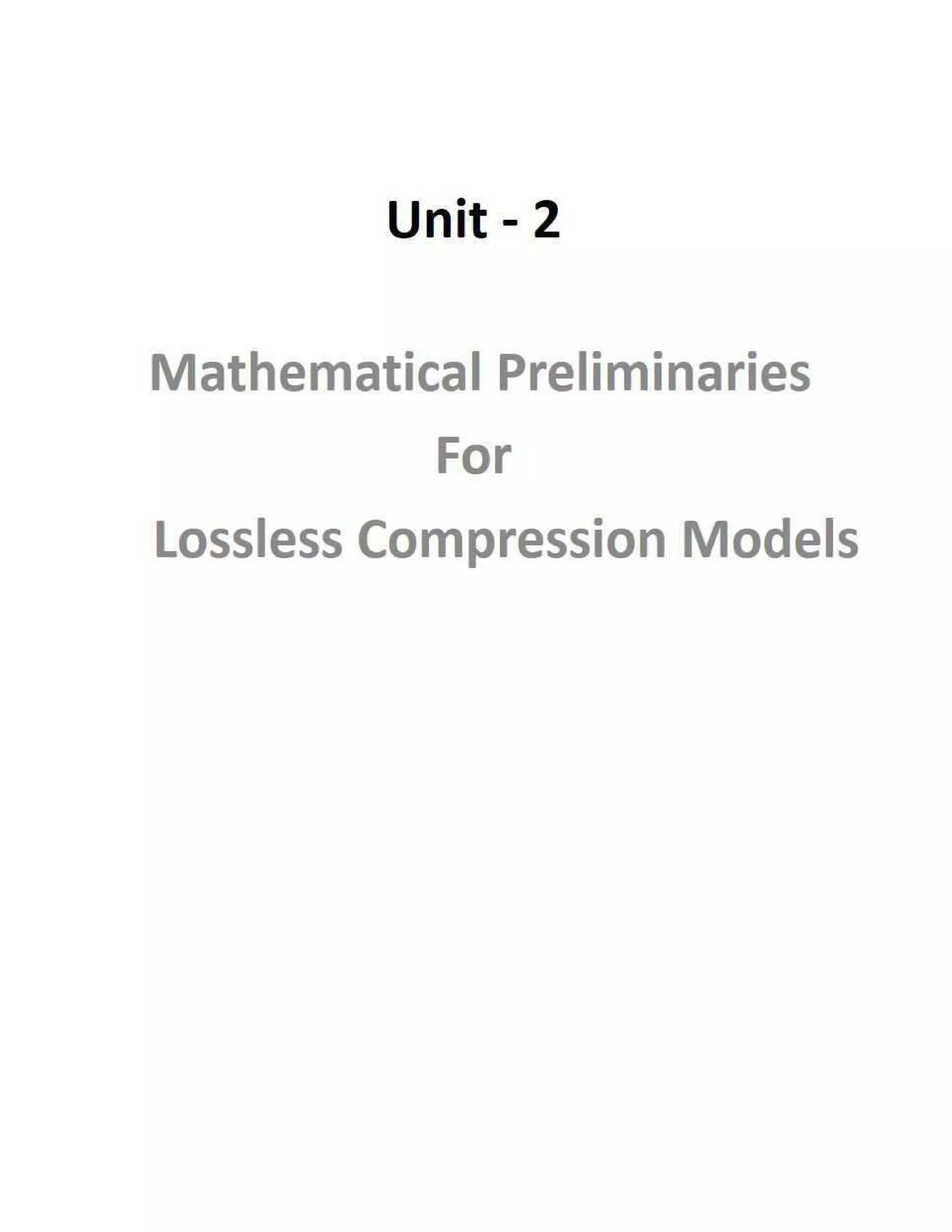 Physical Models Probability Models Markov Models Composite Source Model Coding Uniquely Decodable Codes Prefix Codes Algorithmic Information Theory Minimum Description Length Principle