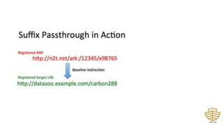 The document introduces the Archival Resource Key (ARK) as a persistent identifier (PID) scheme that has been operational for over 22 years, with over 8.2 billion ARKs created by various organizations including national libraries and universities. ARKs offer a robust solution against broken web links by serving as durable web addresses, allowing for flexible metadata and decentralized resolution without fees or limits. The document also discusses the use of ARKs for various applications, such as genealogical records and scientific datasets, and highlights their potential in ensuring the longevity and accessibility of digital resources.