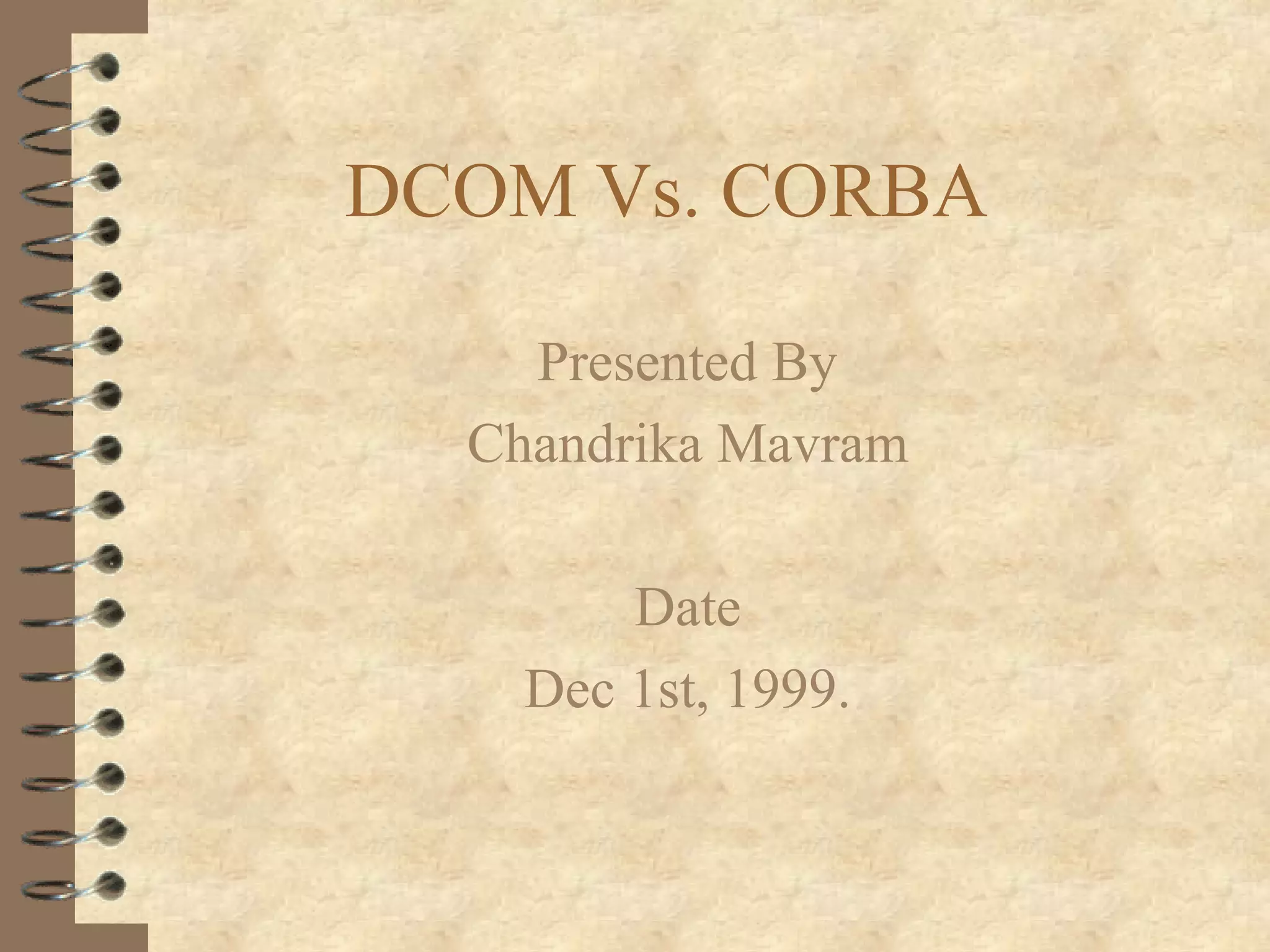 DCOM and CORBA are distributed object computing architectures that allow objects to communicate remotely. Both use a three-layer architecture - a top layer for programming interfaces, a middle remoting layer, and a bottom wire protocol layer. Key differences are that DCOM supports multiple interfaces per object while CORBA inherits all interfaces from a common base class, and DCOM's wire protocol is tied to RPC while CORBA's is not. Overall they provide similar distributed object capabilities with some differences in implementation details.