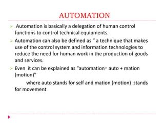 DCS is a distributed control system used to control large, complex industrial plants. It consists of three main stations - the engineering station which configures the system, the operator station which monitors the system, and automation stations which connect to field elements and control processes. DCS systems distribute control elements throughout a plant rather than centralizing them. This allows for greater flexibility and reliability. Common DCS systems include Siemens' Simatic PCS7, which uses programming languages like CFC and SFC and integrates process control capabilities. DCS is primarily used in large industries like chemical plants, oil refineries, and power grids.