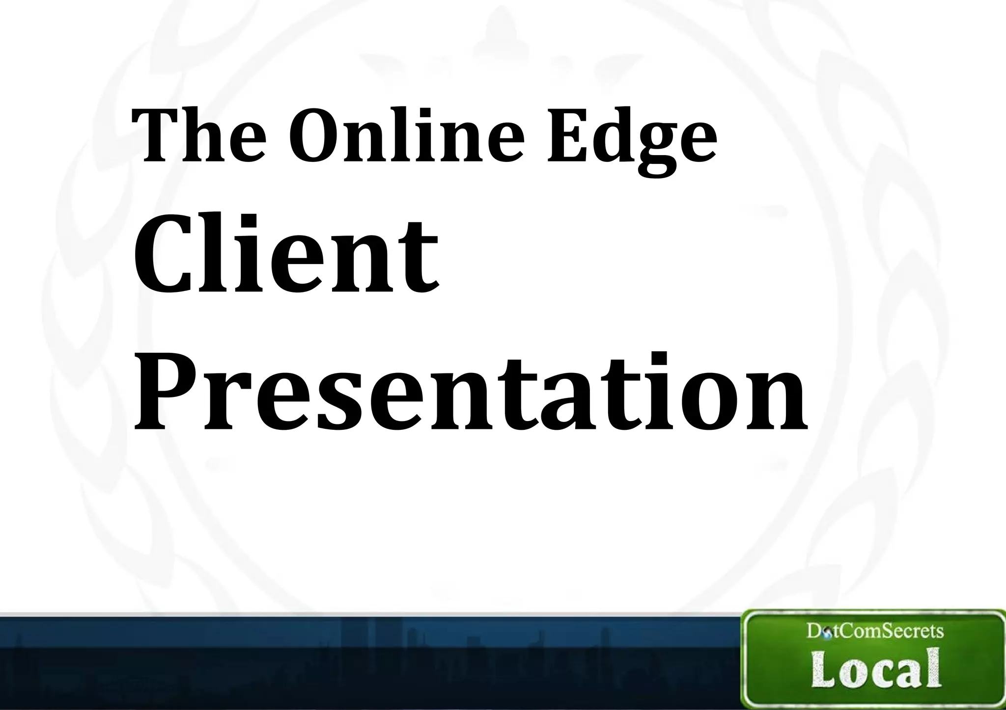 Russell Brunson and his company DotComSecrets are a close partner that had nearly $10 million in revenues last year. Russell regularly speaks at large marketing events. Online usage statistics show growth in activities like taking pictures and sending texts from mobile devices. The keys to success online are getting targeted traffic from multiple sources, converting visitors into customers with an engaging website, and achieving repeat sales through additional purchases and referrals. Websites can be enhanced with features like blogs to improve search engine optimization. Creating content and syndicating it on various sites can also help with offsite optimization and backlinks. The proposal includes email marketing consultation, search engine optimization work, creation of a lead generation page and Facebook page, and a guarantee