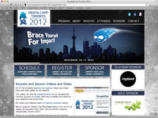 The case study outlines the development of a responsive conference website using Drupal by a small team of volunteers who are industry professionals. It discusses the project's themes, challenges faced, and the lean methodology adopted, as well as the importance of flexibility and real content in the process. The document highlights various technical aspects, including the use of HTML5/CSS3, and the need for customization to meet specific event requirements.