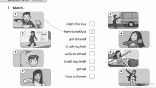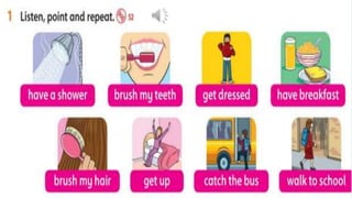 The document summarizes the activities for an English language class on Monday, April 17th, 2023. The class will include an icebreaker game called "Hot Seat Chairs" where students act out different emotions. They will then watch a cartoon and story about Unit 6 on Jim's day. Students will do a workbook exercise and compete in a speed activity of "Who is faster". As homework, students must memorize new words and finish the assigned workbook page.