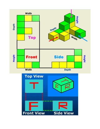 The document outlines key concepts related to technology, design processes, and engineering principles, including definitions of technology, innovation, design briefs, and constraints. It also describes the stages of the design process, techniques for brainstorming, and methods for representing objects through various drawing techniques such as perspective and orthographic projections. Additionally, it emphasizes the importance of standards in engineering, including statistical evaluation methods and documenting designs in an engineer's notebook.