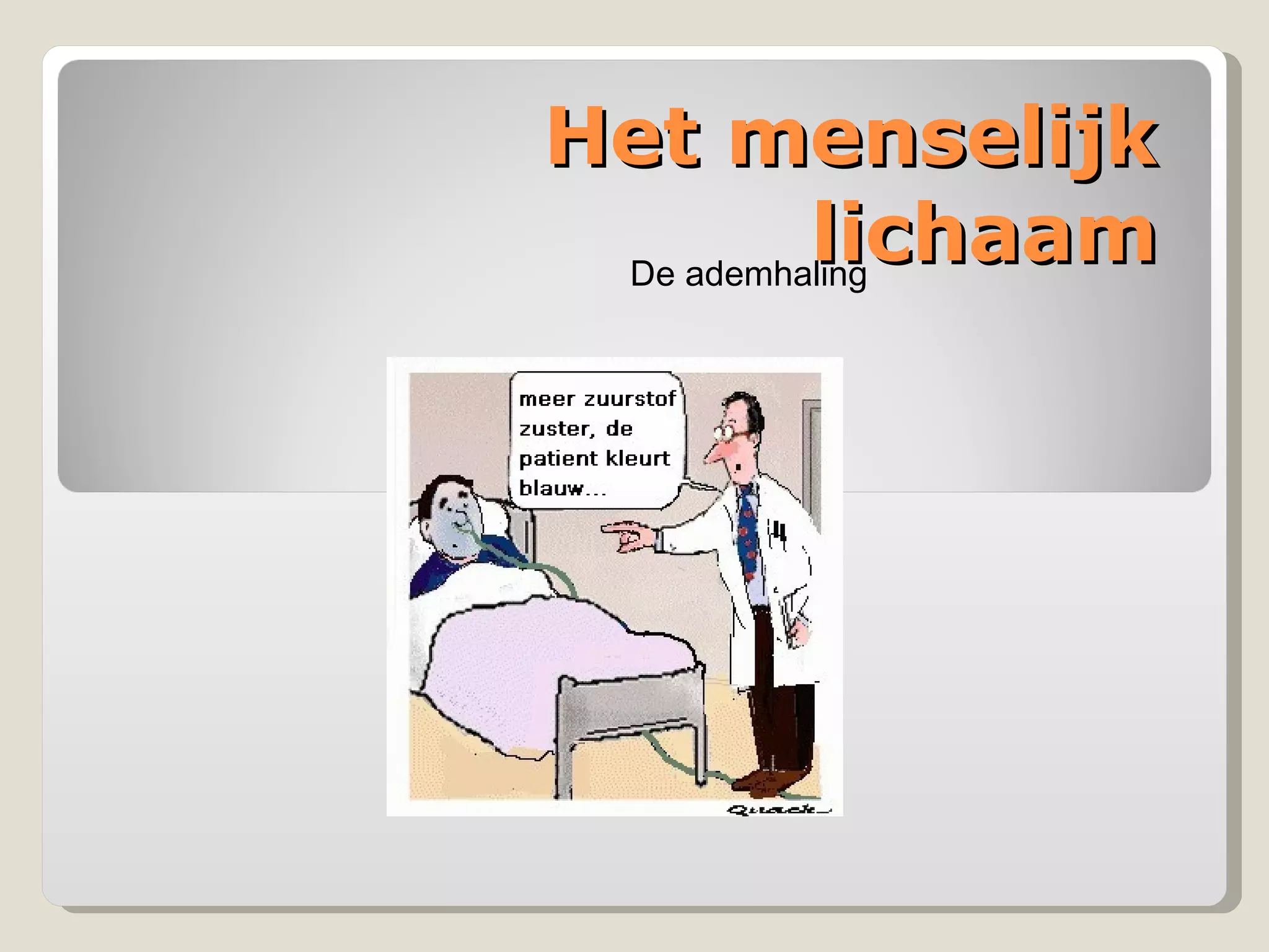 Daarom ademen wij!Zuurstof (O 2 ) opnemen in het lichaam => nodig om energie te kunnen maken in de cellen.