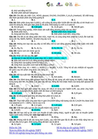 Tài liệu chứa các câu hỏi và bài tập liên quan đến hóa học, chủ yếu tập trung vào phản ứng hóa học, tính chất của các nguyên tố và hợp chất, cũng như các phương pháp điều chế và phân tích chất. Nó bao gồm nhiều câu hỏi đa dạng từ cơ bản đến nâng cao về các kiến thức hoá học, đáp ứng cho mục đích ôn thi tốt nghiệp trung học phổ thông.