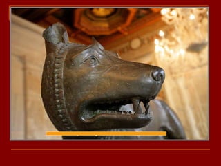 Rómulo e Remofundan Roma. Para decidir cal será o futuro rei deciden consultar a vontade dos deuses expresada a través do voo das aves. Rómulo no Palatino ve primeiro seis voitres, Remo máis tarde doce no Aventino. Xorde a disputa e Rómulo mata a Remo. Segundo outra versión, Remo morreu a mans de Rómulo cando saltou o rego que trazaba este, burlándose do rito da fundación da cidade.