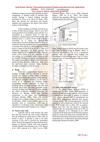 The document presents a comprehensive review of zero energy building envelope components, emphasizing the importance of energy efficiency in building design through both active and passive strategies. It discusses various elements such as walls, roofs, and insulation materials that contribute to achieving zero energy or near zero energy buildings. The review highlights current advancements, potential future developments, and the necessity of improving energy performance in both residential and commercial structures to address global energy and climate challenges.