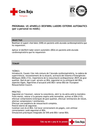 PROGRAMA: USAPARELLS DESFIBRIL·LADORS EXTERNS AUTOMATICS (per a personal no mèdic)