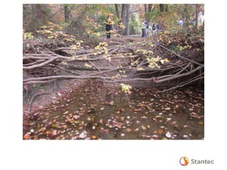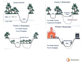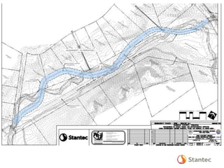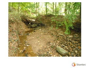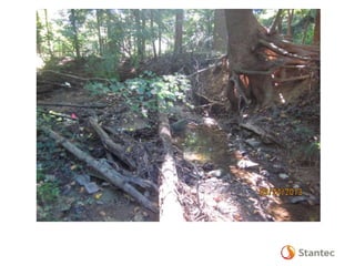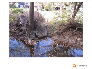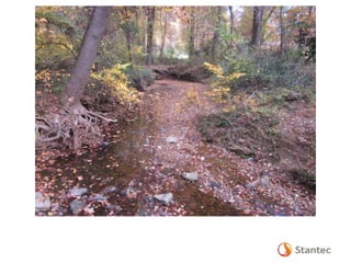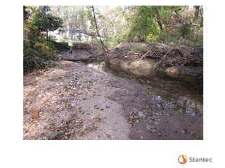 The document outlines the Dead Run Stream Restoration Project discussed during a public meeting on April 23, 2014, emphasizing Fairfax County's stormwater management and watershed planning. It includes project objectives, existing conditions, proposed improvements, and highlights of the Middle Potomac watershed plan, including 24 priority projects for Dead Run. The presentation provides details on stream restoration techniques and monitoring programs to ensure water quality improvements in the area.