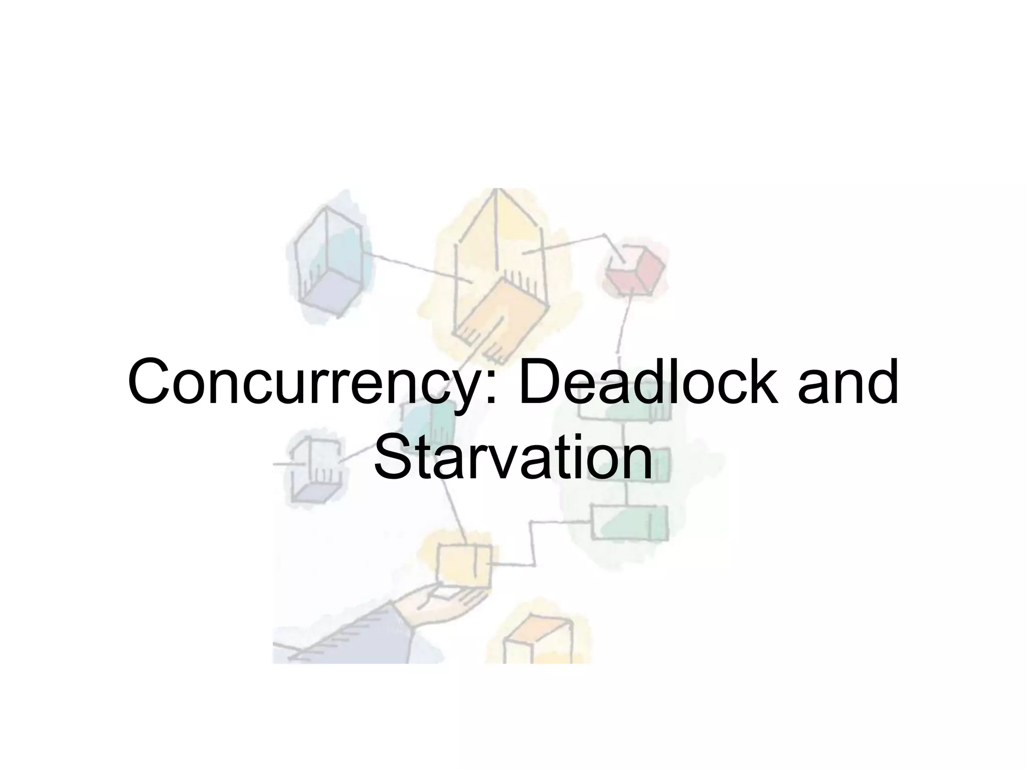 The document discusses concurrency issues related to deadlock and starvation. It covers different approaches to dealing with deadlock including prevention, avoidance, and detection. For prevention, it discusses restricting conditions that allow deadlock like mutual exclusion, hold and wait, no preemption, and circular wait. Avoidance uses techniques like process initiation denial and resource allocation denial to dynamically determine if a request could lead to deadlock. Detection involves analyzing resource allocation graphs to check for deadlocked processes.