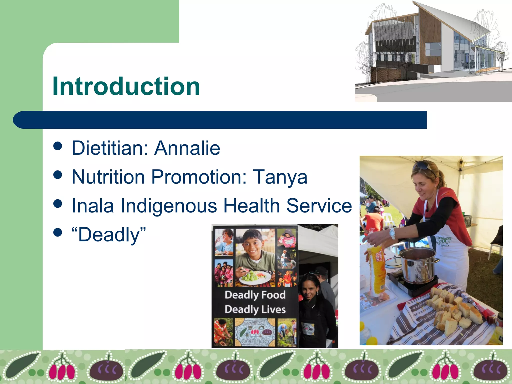The document emphasizes the importance of healthy eating for Aboriginal and Torres Strait Islander populations to prevent chronic diseases and improve overall health. It provides statistics on current dietary habits and offers tips for modifying meals to be healthier while encouraging community involvement and cultural appropriateness in nutrition. Resources for healthy eating, such as recipe modifications and guides, are also included to facilitate better food choices.
