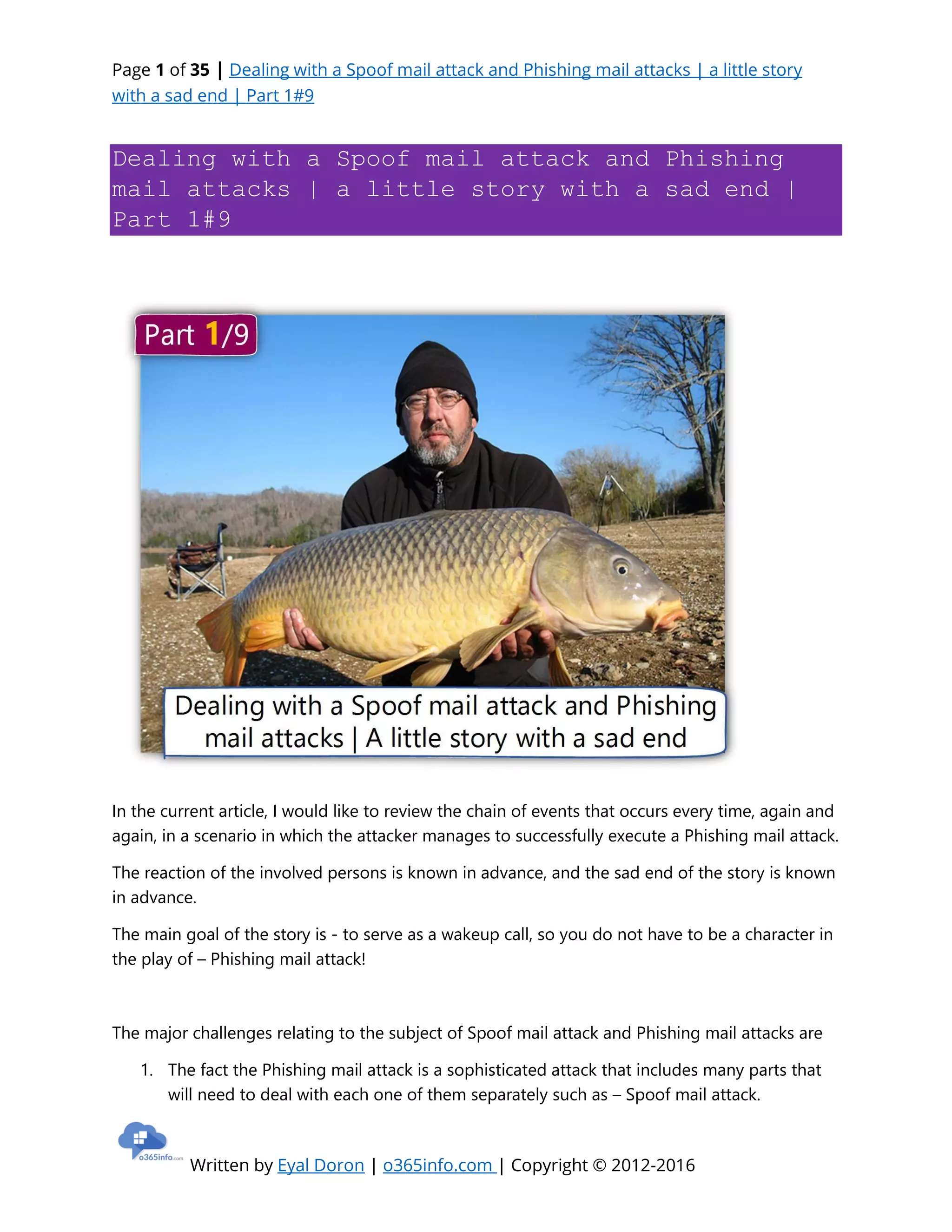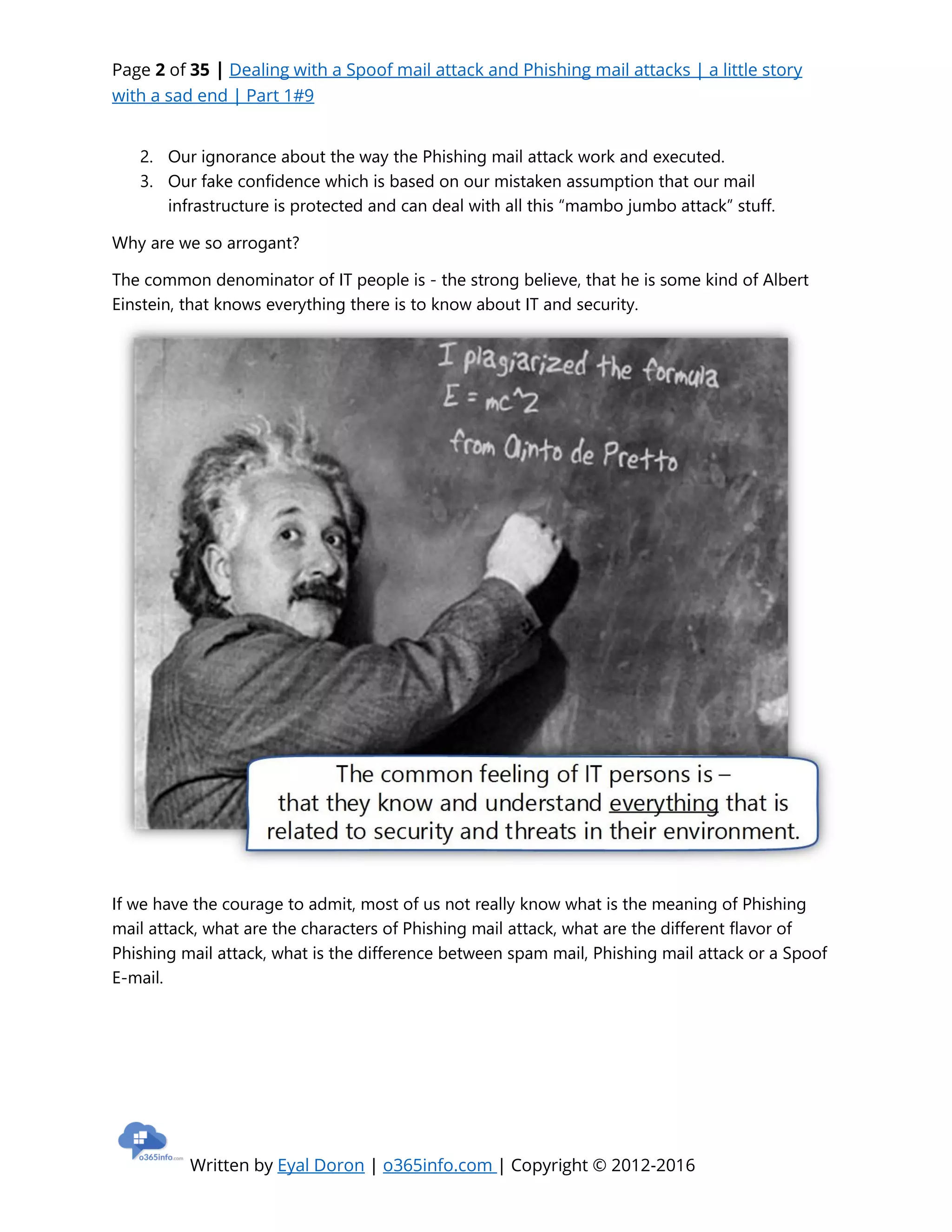 The document narrates a fictional but cautionary tale about the severe consequences of phishing and spoof mail attacks, illustrating the emotional turmoil faced by IT professionals during such incidents. It emphasizes the unfortunate ignorance and overconfidence that organizations possess, leading to vulnerabilities in their mail systems. The story culminates in the protagonist's downfall, serving as a wakeup call for vigilance against cyber threats.