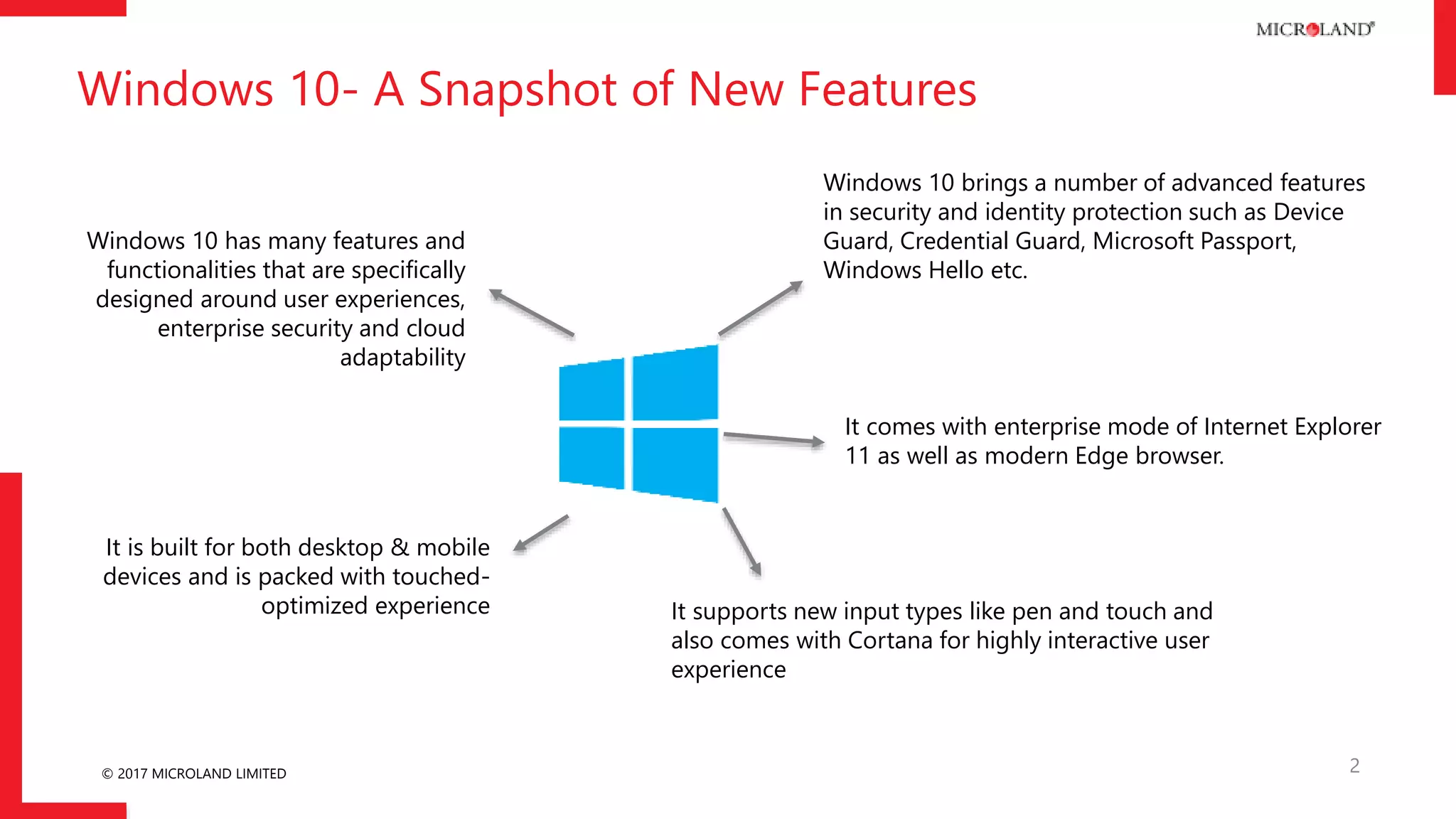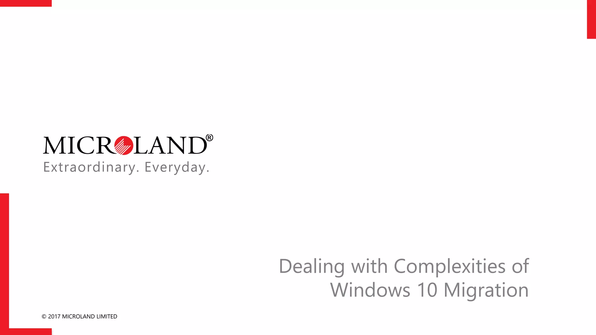 The document discusses the features and challenges of migrating to Windows 10, emphasizing user experience, enterprise security, and cloud adaptability. It highlights the importance of application and hardware compatibility, deployment models, and planning for security features during the migration process. Recommendations include early planning, thorough testing, and leveraging automated tools for a smooth transition.