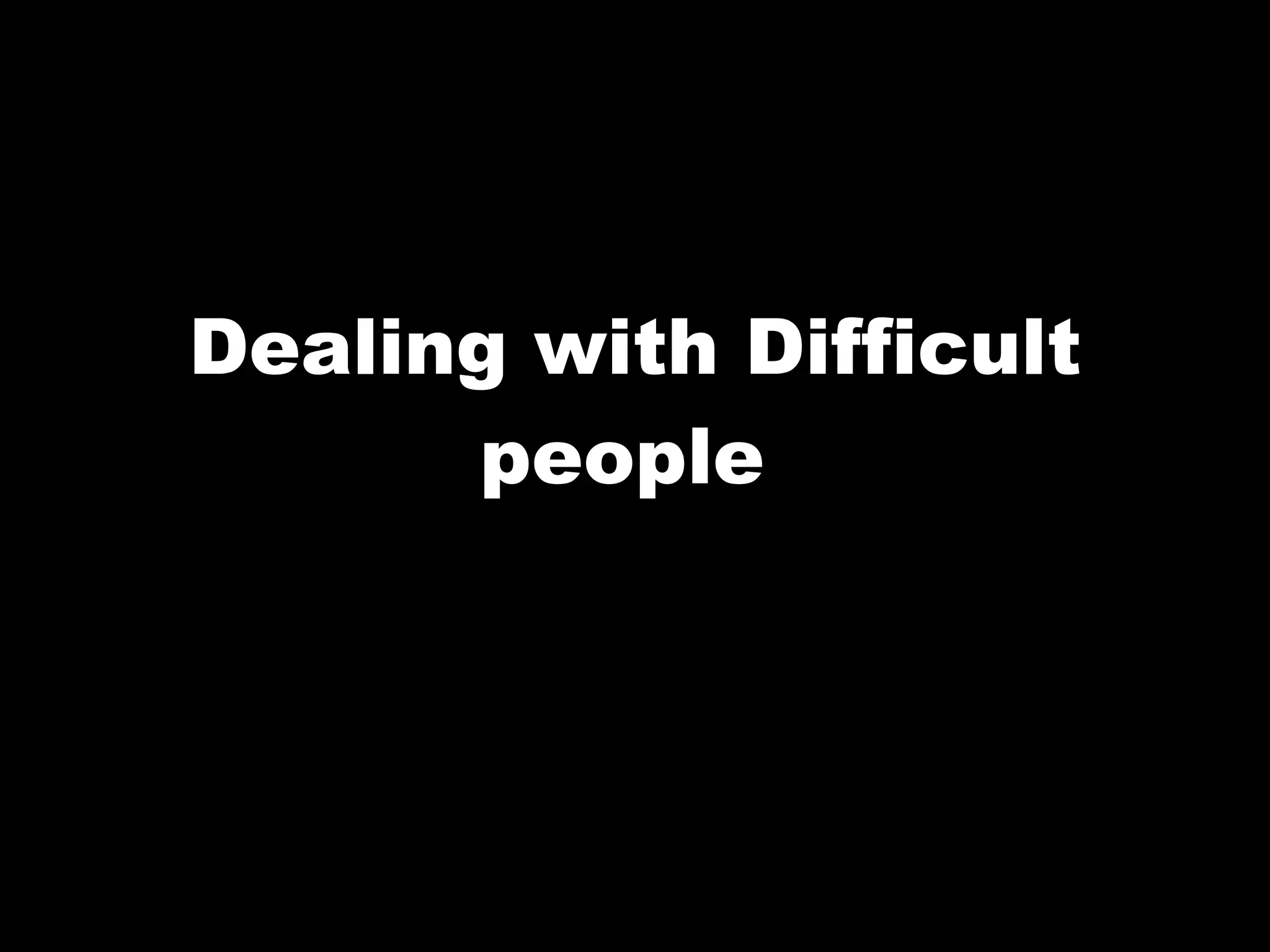 The document discusses how to deal with difficult people by following four steps: understanding yourself, managing yourself, understanding the other person, and doing something to change the relationship. It defines types of difficult people and common beliefs they may hold. Some tips for influencing others include starting with compliments, praising progress, and letting the other person save face. Interviews can help understand someone's values to predict their behavior and find approaches to respect them. Having an action plan that anticipates reactions is also advised for dealing with difficult individuals.
