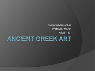 This document appears to be a list containing 4 items: Deanna Maruschak, Professor Marsh, AT231(50), and 3 works of art titled "The Lady of Auxerre", "The Dying Warrior", and "The Old Market Woman".