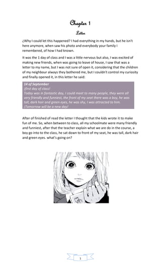 The narrator receives a mysterious letter describing events that will happen at their new school, including meeting a boy named Daniel. Everything described in the letter comes true. The narrator begins spending time with Daniel but later discovers he died by suicide after being abused by his father. The narrator is given another chance to change the events when they go back in time to the day they first met Daniel. This time, the narrator promises Daniel he is not alone and manages to prevent his death.