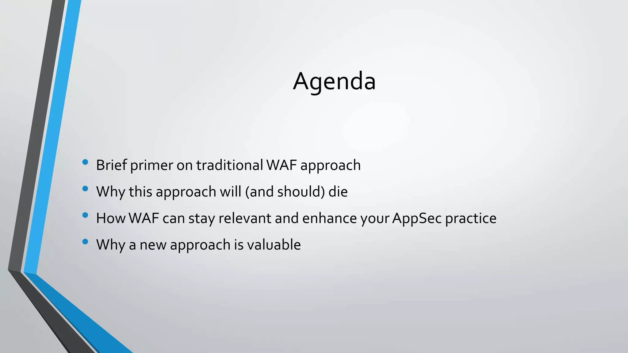 The document describes how traditional web application firewalls (WAFs) work by checking requests against rules for things like RFC compliance, URL and parameter validation, length limits, and attack signatures. However, the document argues this approach will become outdated as applications evolve and new attacks emerge. A new approach is needed for WAFs to stay relevant and enhance application security.
