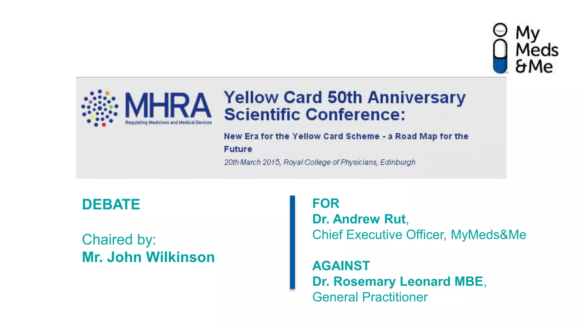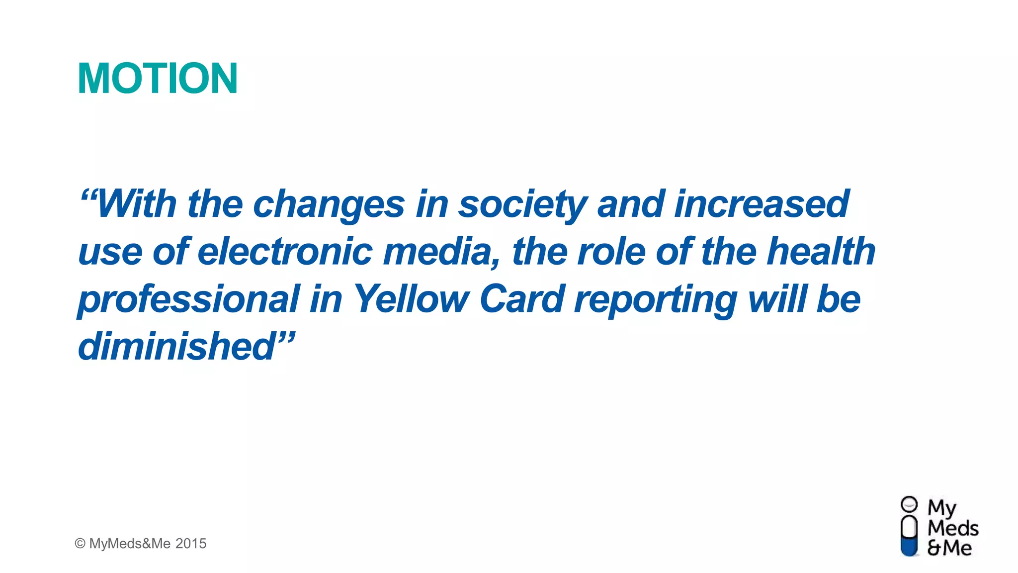 The document presents a debate on the diminishing role of healthcare professionals (HCPs) in yellow card reporting for adverse drug reactions, emphasizing that despite increased reports of adverse reactions globally, HCP reporting remains low in the UK. It highlights significant under-reporting by HCPs compared to patient reports and advocates for improving patient awareness and simplifying reporting processes through electronic means. Ultimately, it suggests that direct patient reporting of adverse drug reactions is vital for pharmacovigilance and can enhance data quality and safety monitoring.