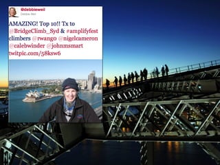 This document discusses 5 truths about marketing to baby boomers using social media. It notes that baby boomers love social media and are ideal consumers due to their spending power. It also emphasizes that social media allows businesses to surprise and delight customers by engaging them across different platforms. Additionally, it highlights that every employee can be a storyteller for a brand by sharing photos and experiences on social media. Finally, it stresses that the "sweet spot" of social media is using it to make a positive difference and create meaning for customers.