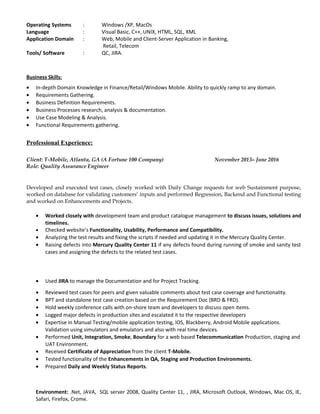 Debjit Paul is a QA Analyst with over 6 years of experience in testing distributed applications. He has worked as a Senior Testing Engineer at HCL Technologies and as a Software Tester at CIBER Sites India Pvt. Ltd. He has expertise in automated testing using tools like QTP and manual testing. He is proficient in testing web, mobile, and client-server applications in domains like banking, retail, and telecom. He has experience in all phases of the SDLC and testing life cycle.