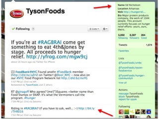 The document discusses the importance of social media for nonprofit organizations, emphasizing the need for a strategic approach to engage with audiences and achieve communication goals. It outlines best practices such as creating content strategies, fostering personal engagement, and utilizing various platforms like Twitter, Facebook, and YouTube to enhance recruitment and awareness. Additionally, it highlights the significance of building relationships rather than merely broadcasting messages to create community and support.