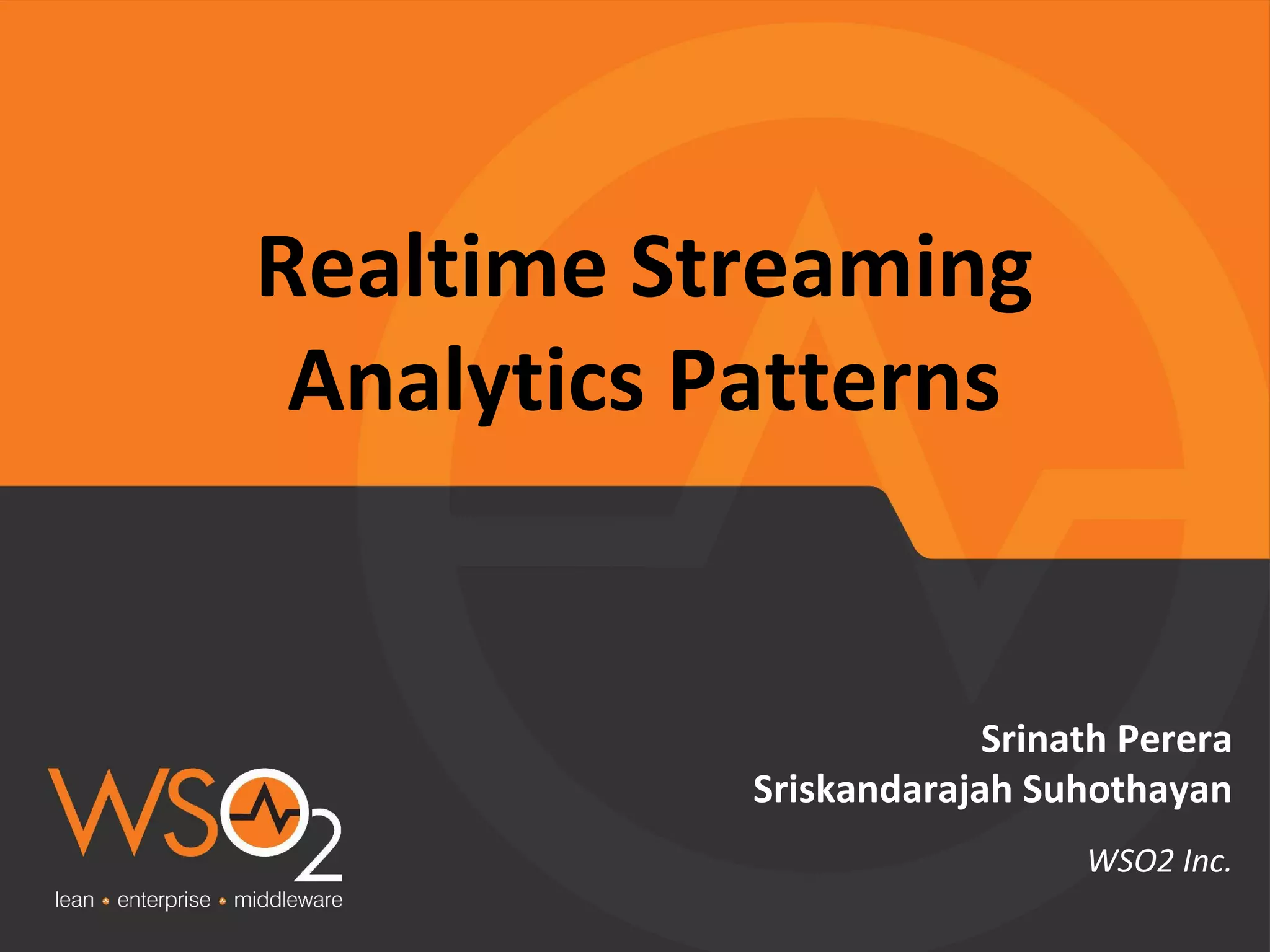 This document discusses various patterns for real-time streaming analytics. It begins by providing background on data analytics and how real-time streaming has become important for use cases where insights need to be generated very quickly. It then covers basic patterns like preprocessing, alerts and thresholds, counting, and joining event streams. Further patterns discussed include detecting trends, interacting with databases, running batch and real-time queries, and using machine learning models. The document also reviews tools for implementing real-time analytics like stream processing frameworks and complex event processing. Finally, it provides examples of implementing several patterns in Storm and WSO2 CEP.