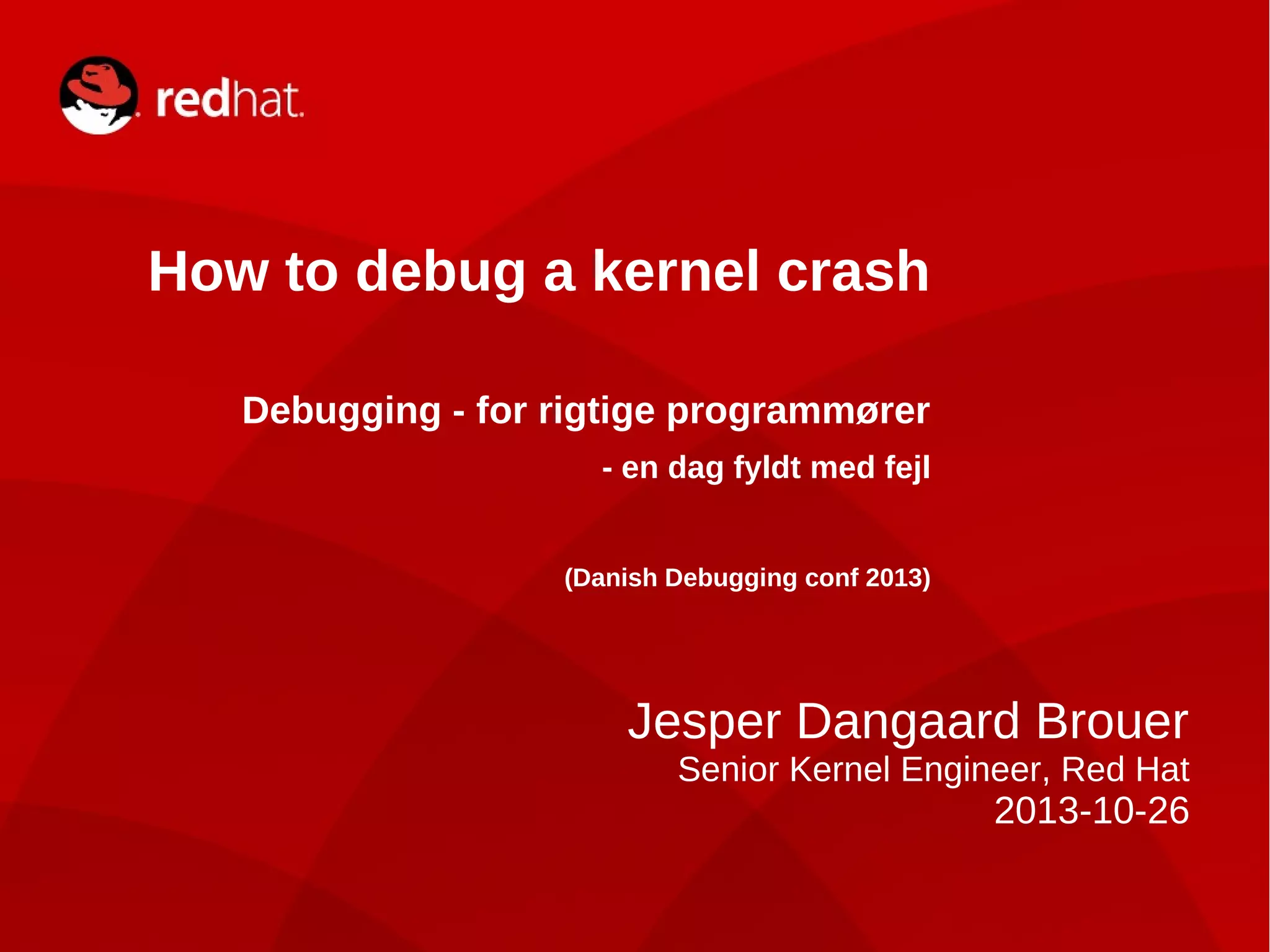The document describes how to debug a kernel crash by recording the full kernel panic text using techniques like configuring a serial console, using the netconsole kernel feature, or manually dumping memory on a virtual machine. It also explains how to use the crash analysis tool to examine the crash dump, including getting a backtrace, disassembling instructions, and viewing the kernel log.