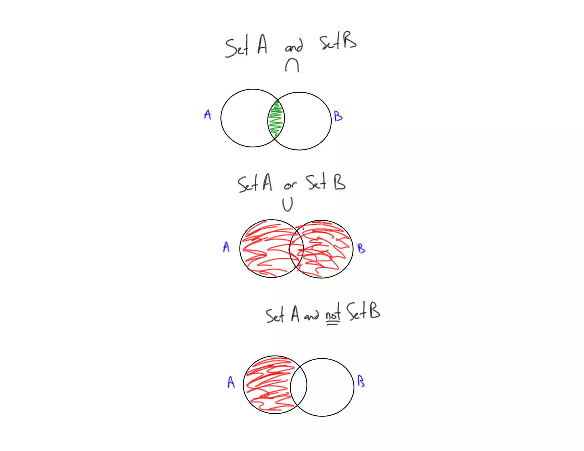 Set A and Set B is the numbers that are in both Set A (1, 2, 3, 4, 5, 6, 7, 8, 9) and Set B (2, 4, 6, 8). Set B and Set C is the numbers that are in both Set B (2, 4, 6, 8) and Set C (4, 8). Set B or Set C is the numbers that are in Set B (2, 4, 6, 8) or Set C (4, 8).