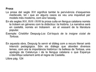 En els segles XVI, XVII i XVIII la prosa culta en llengua catalana només