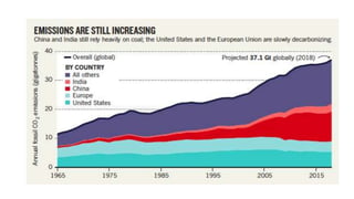 The document discusses a roadmap for global decarbonization by 2050, highlighting the significant contributions of major fossil fuel-producing countries to climate change. It outlines five key pillars for achieving this goal, including zero-carbon electricity and sustainable land use, and emphasizes the need for international collaboration, especially led by Europe. Additionally, it addresses the challenges of decarbonization in various sectors and the vulnerability of Asia to climate impacts, while promoting potential public health benefits from reduced air pollution.