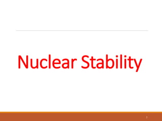 1) Alpha decay involves emission of a helium nucleus and decreases the atomic number by 2 and mass number by 4. Beta decay can be beta minus, which converts a neutron to a proton, or beta plus which converts a proton to a neutron. Electron capture involves absorption of an inner orbital electron by a proton to form a neutron.