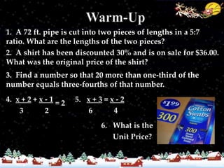 The document provides information and examples about linear equations and functions. It discusses determining if equations are linear based on their standard form, graphing linear equations, identifying x- and y-intercepts, determining if a relation is a function, and solving equations that contain only an x-variable. Examples include graphing the equation y=-3x/4, finding the x-intercept of 2x-2=-4, and graphing the function 5x+2=7.