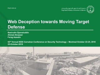 1) The document discusses challenges with static web application defenses and proposes combining web deception and moving target defense (MTD) techniques.