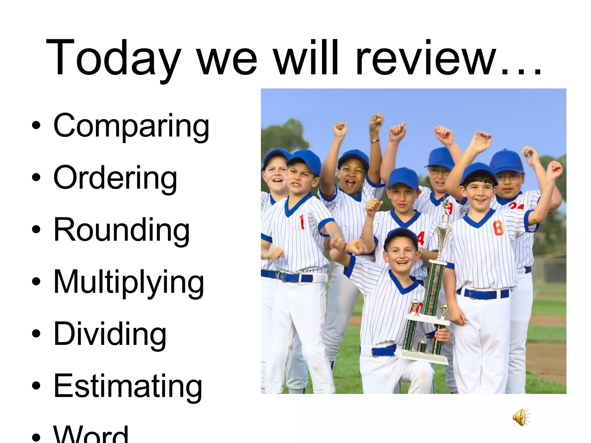 1. The document reviews key concepts involving decimals including comparing and ordering decimals, rounding decimals, multiplying and dividing decimals, and estimating calculations with decimals. It also provides examples of word problems involving decimals.
